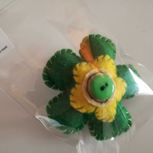 Borboleta em felpo  com aplicações de felpo colorido e  missangas