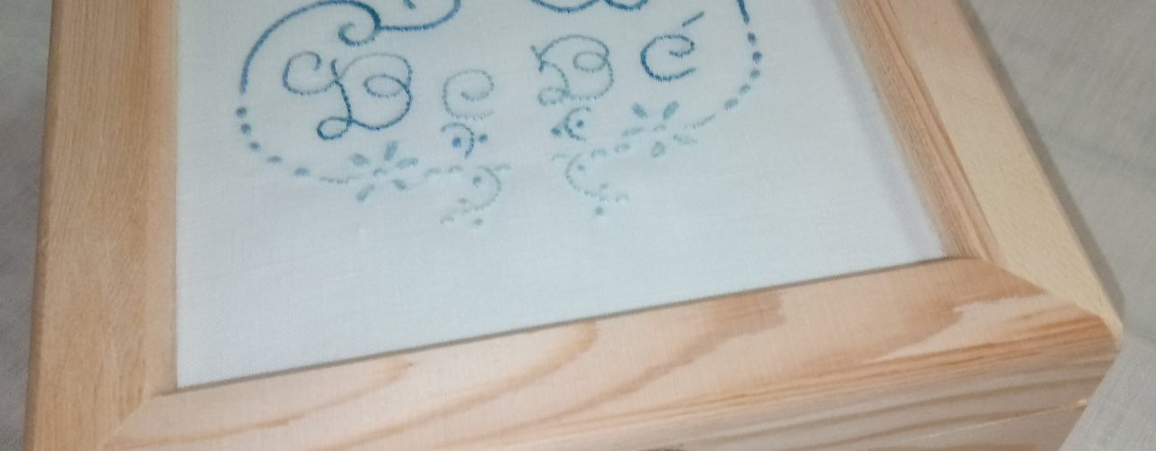 Bordado colorido em linho, em caixa de madeira com tampa em vidro, interior com 4 divisões amovíveis com fecho Caixa 16.5 x 16.5 x 9 cm: … Continue a ler Caixa Bebé – Azul