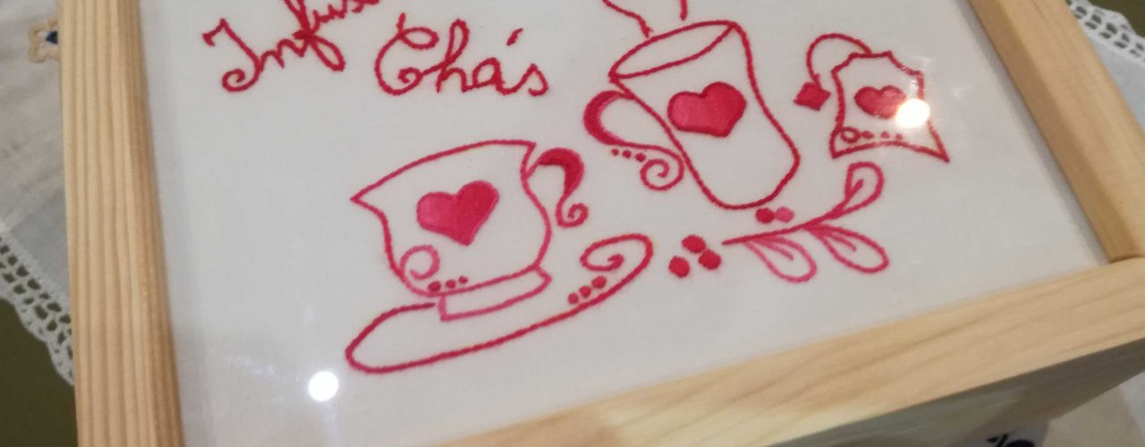Bordado colorido em linho (marcador), em caixa de madeira com tampa em vidro, interior com 6 divisões amovíveis com fecho Caixa 22,5 x 16,5 x 8.7 … Continue a ler Caixa Infusões – 6 divisões