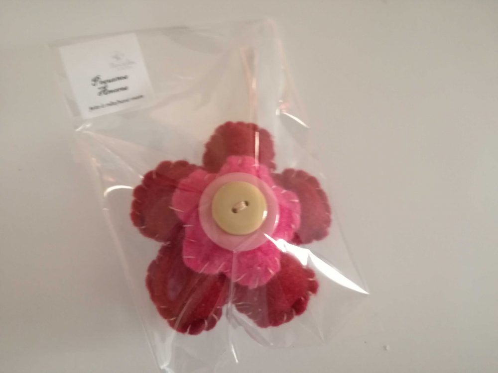 Alfinete em felpo com aplicações em felpo colorido e botões