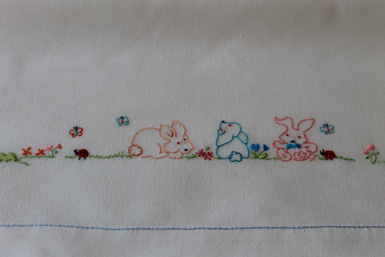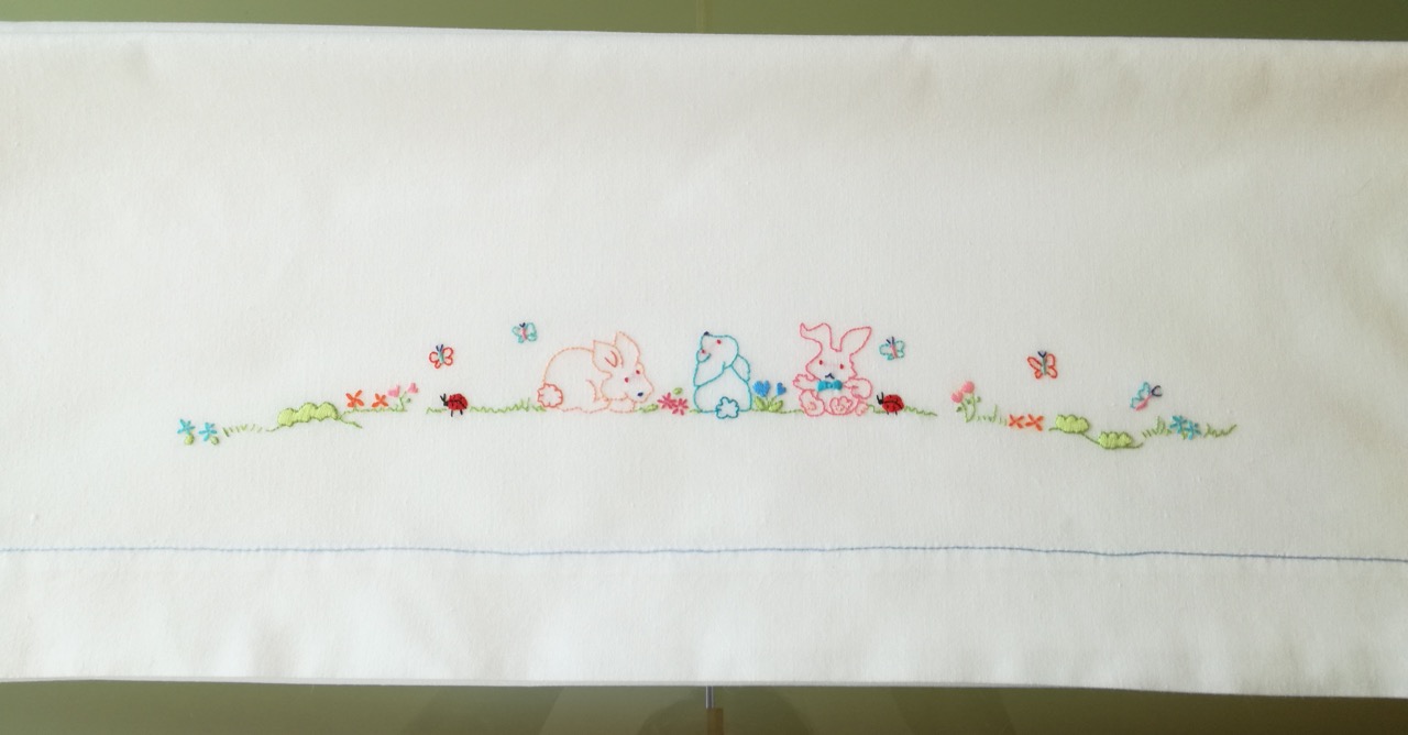Lençol superior com desenho bordado: 90 x 60 cm