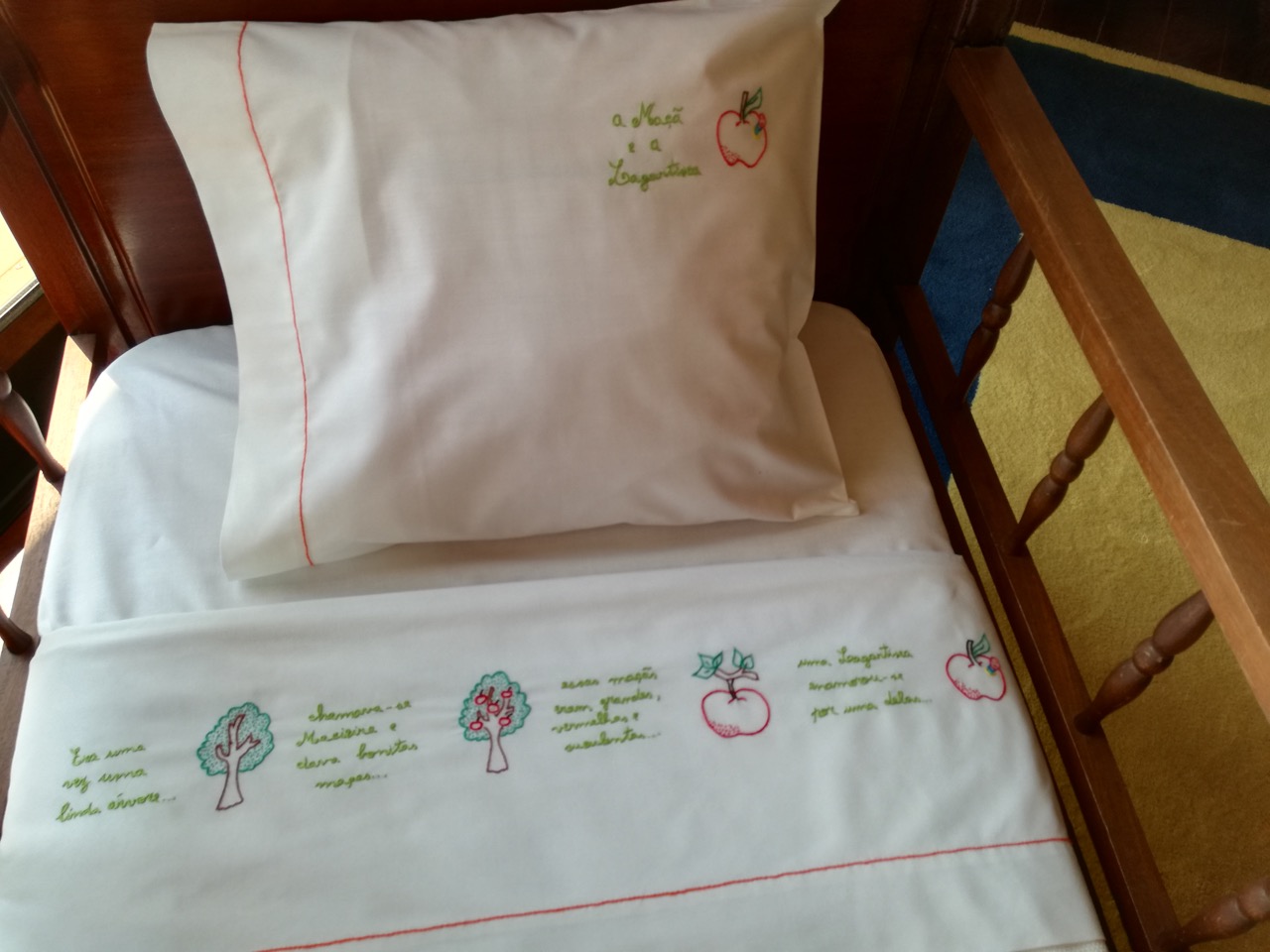Conjunto de lençol confeccionado em percal fino, bordado à mão