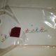 Toalha em pano de linho, bordada à mão e remate em ponto de croché